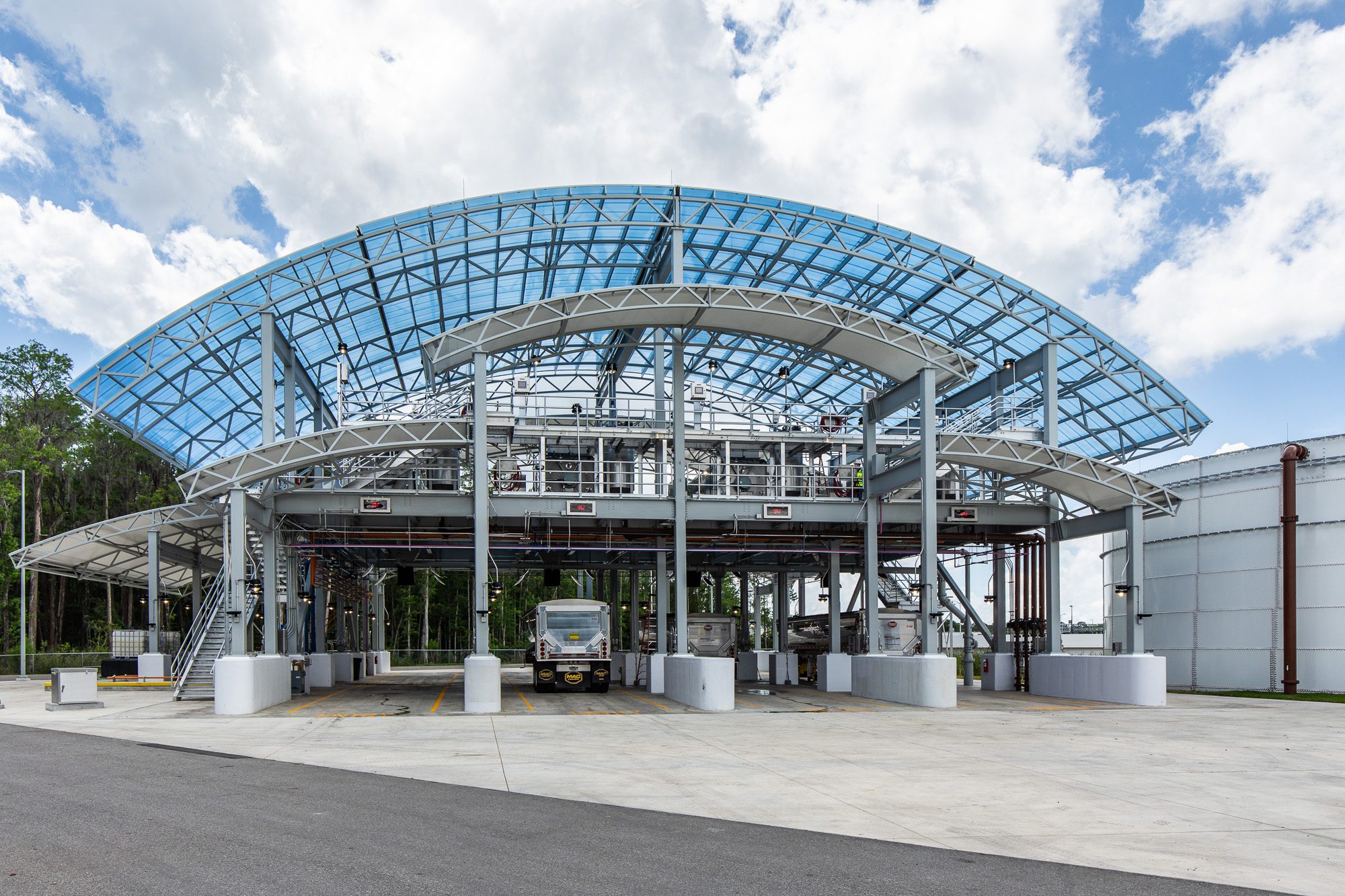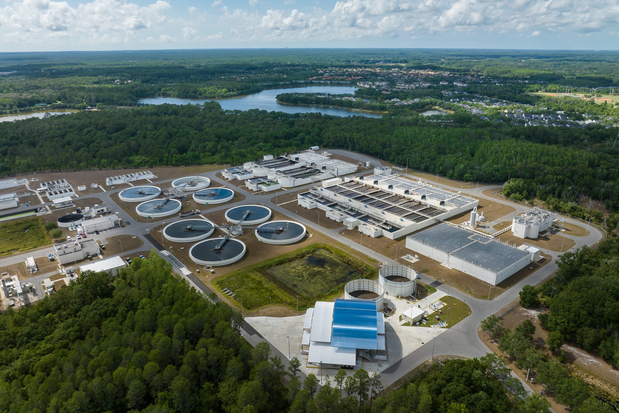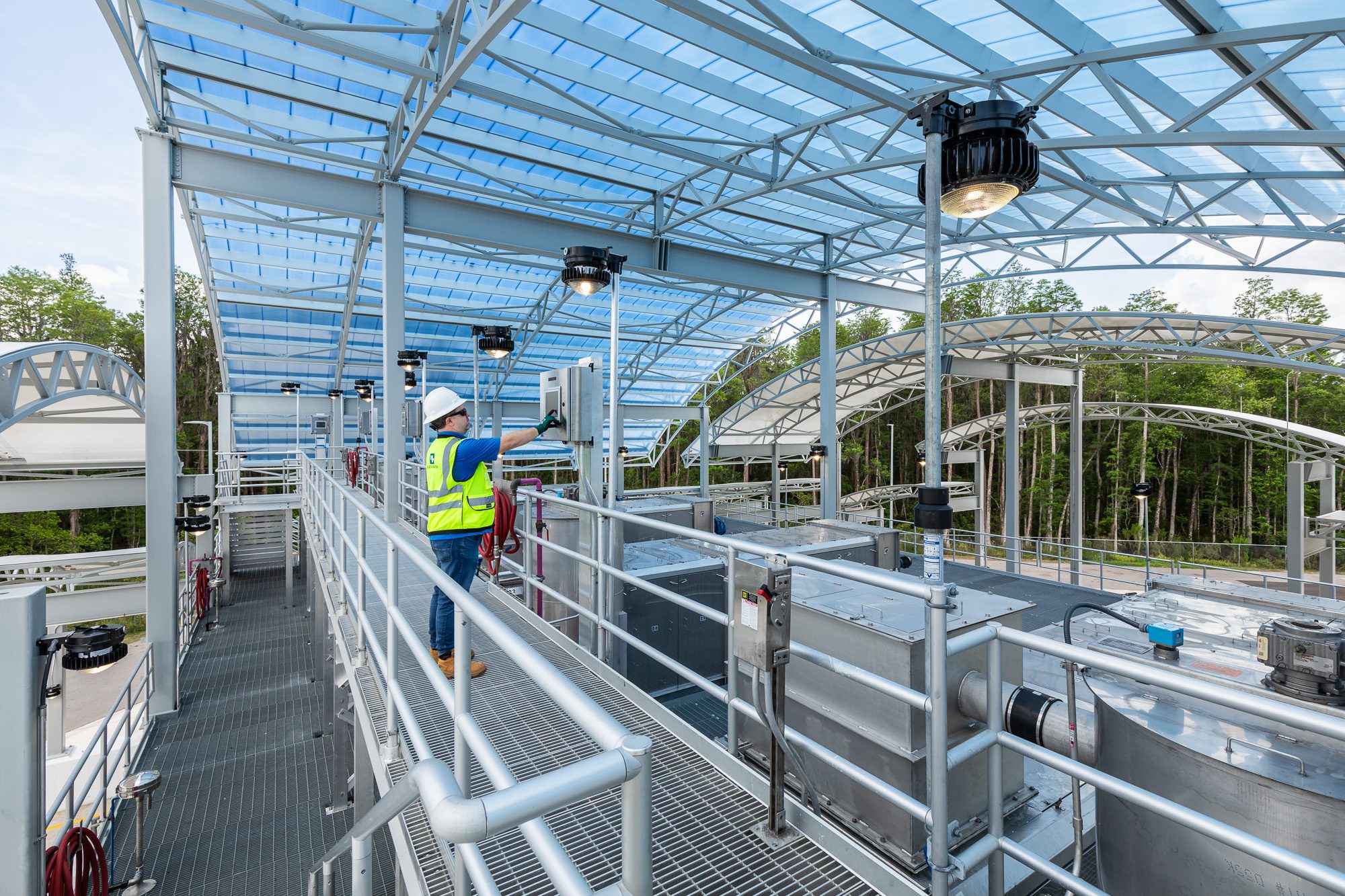 This project required working within an active water treatment facility, coordinating access to operational systems while maintaining safety around ongoing processes. Coverage included elevated structures, process systems, and restricted areas that required planning and coordination on site.